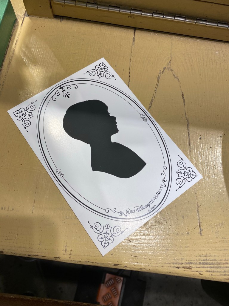 After dinner, we went to an open air dance party and let Grant ride the train and carousel. We also looked around at the toy store and visited Goofy’s Candy Company. Grant picked out a massive Mickey Mouse shaped chocolate chip cookie dipped in chocolate and found a carnival style fun house mirror to be the most hilarious thing ever. Before we headed back to our resort we stopped at the Ghirardelli store and got the most decadent chocolate brownie. We sat down to eat it and spotted the silhouette stand. This was the only souvenir I had my heart set on for this trip and let me tell you it did not disappoint. I’m not sure what I had in mind, but it definitely was not what we experienced. I had thought maybe this was a digital process. But I was so wrong. I sat down and held Grant in my lap while a very sweet cast member literally cut out his profile using a regular pair of scissors and did it completely by hand. She captured the most perfect image of my boy down to his super long eyelashes! My heart was so so happy in this moment. This was our first little bit of Disney magic. I knew we were going to have the most wonderful time. After finishing only half of our brownie, we walked back to the bus and caught a ride back to our resort. Once we got there we went to the food court to pick up our souvenir refillable mugs. Grant and James have a tradition of doing penny presses anywhere that has them. Disney proved to be huge for this tradition for them. They made a ton of them starting with ones in our resort food court. After that it was back to the room to rest up for our first park day the next morning.