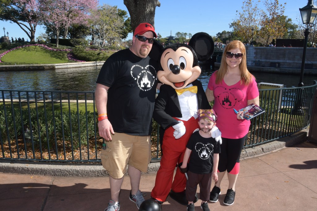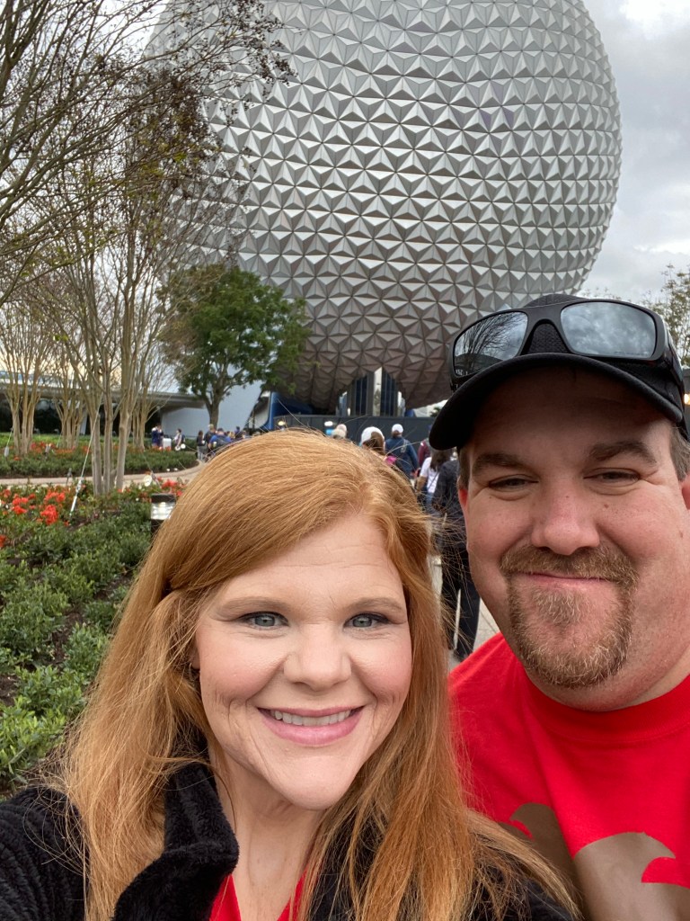 We got up bright and early and were so excited to take on our first true day at Disney! We caught the bus around 8 am and made our way to Epcot. We were super excited to see the iconic sphere, Spaceship Earth. After making our way through bag check and the ticket line, we headed to wait in line to rope drop since we made it before the park even opened.