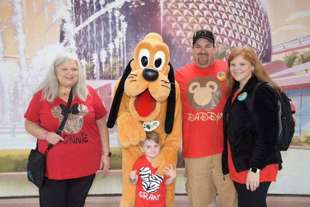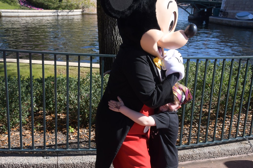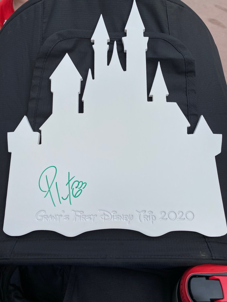 After this attraction we got in a short line for our first character meet and greet with Pluto. Grant was so so so excited for this. I was very worried that he would not enjoy the characters because he is always a little hesitant at Silver Dollar City and Christmas parades. But he proved me wrong for sure. He gave Pluto the biggest hug and had the best smile on his face. We had Pluto sign our castle cut out and got pictures taken with the memory maker photo pass. I am so thankful we purchased the memory maker for this trip. We have so many wonderful pictures. All we had to do was scan our magic bands and we were on our way with pictures being sent to the app on our phones! Disney has things figured out!!