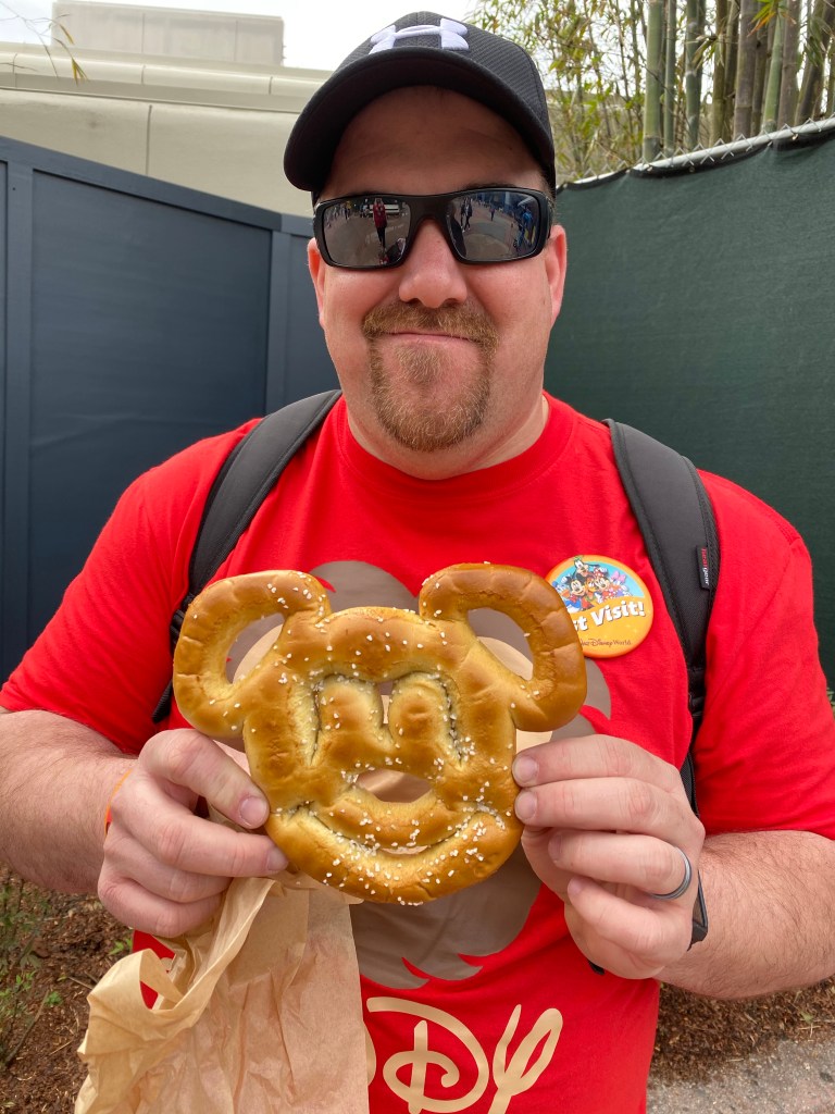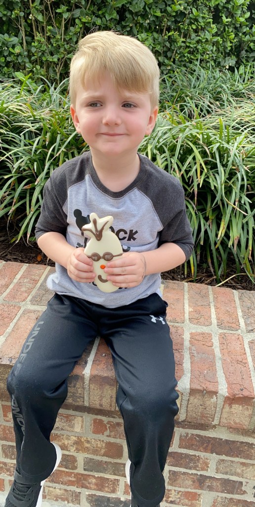 After this meet and greet, it was time for our second fast pass of the day. Frozen Ever After was an amazingly beautiful ride and definitely one of my favorites of the trip. I believe I enjoyed it more than Grant did! It felt like we were really in Arendale. Grant picked out a snack after this ride and got another Mickey shaped chocolate chip cookie…are you seeing a pattern here??