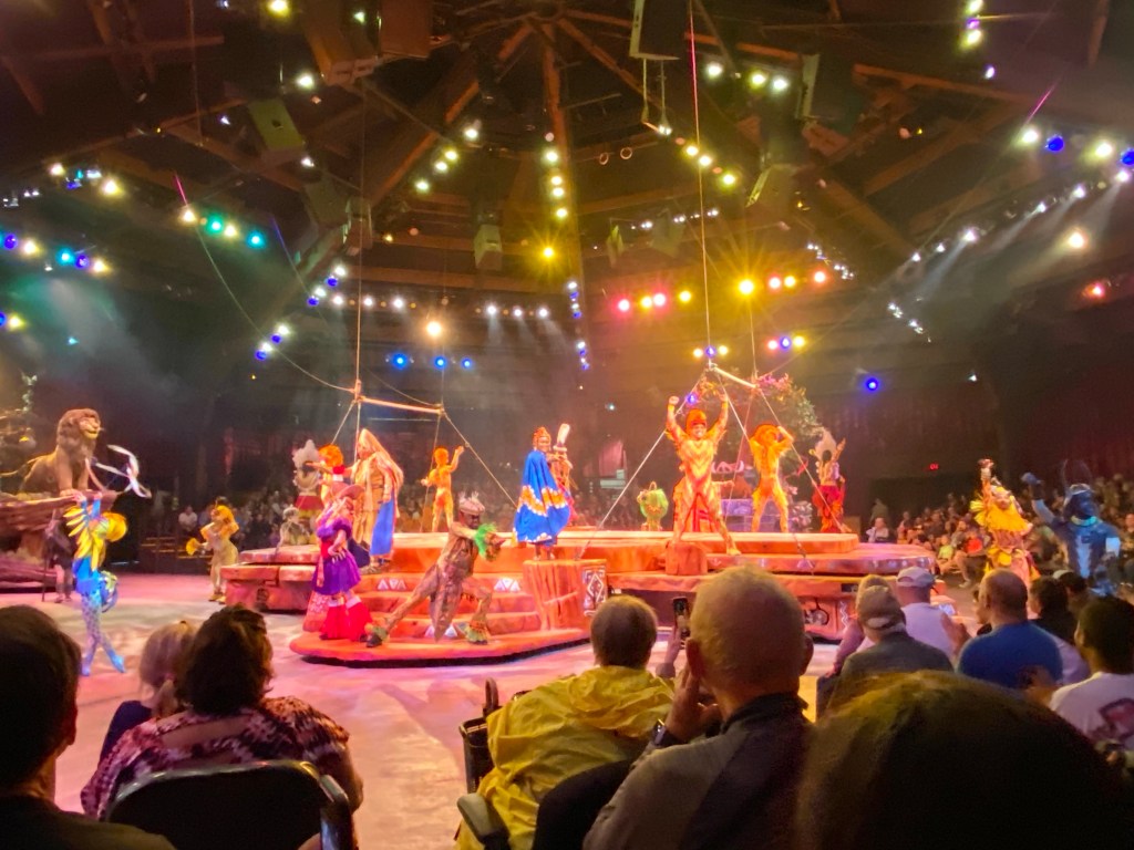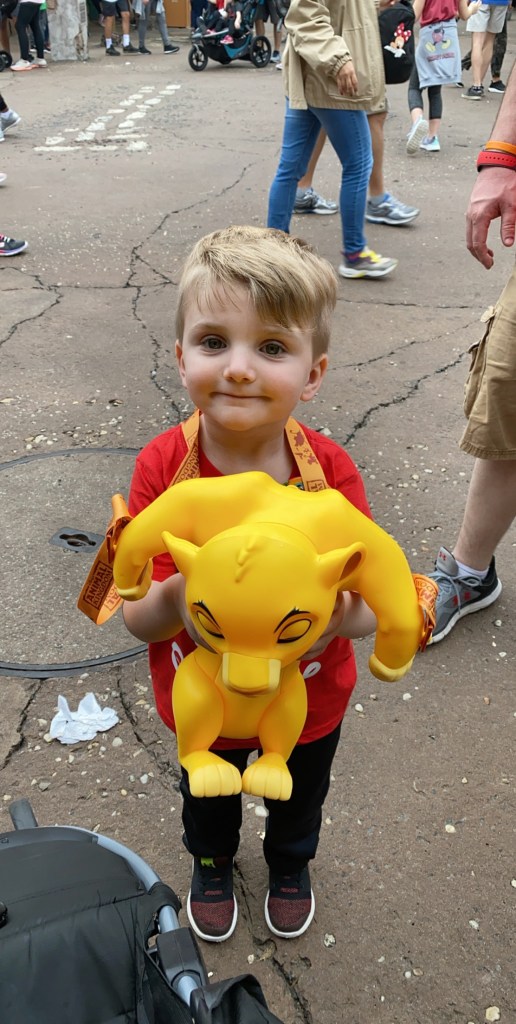 Next up was the Festival of the Lion King show. Grant fell asleep while we waited in line so he was so surprised when he woke up in the middle of it. I wish I had his reaction on camera. It was priceless. Lion King is one of his favorite movies and this show did not disappoint. It was beautiful in the costuming and the whole setup was just amazing.