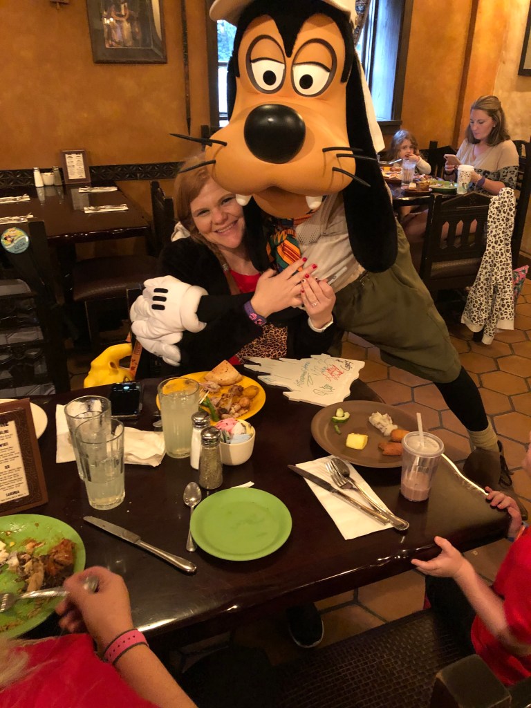 After this we decided it was time to head to Animal Kingdom since we were park hopping this day and it was already around noon. On our way out, we found a character meet and greet line for Goofy. This was such a fun meet and greet to end Epcot with!!