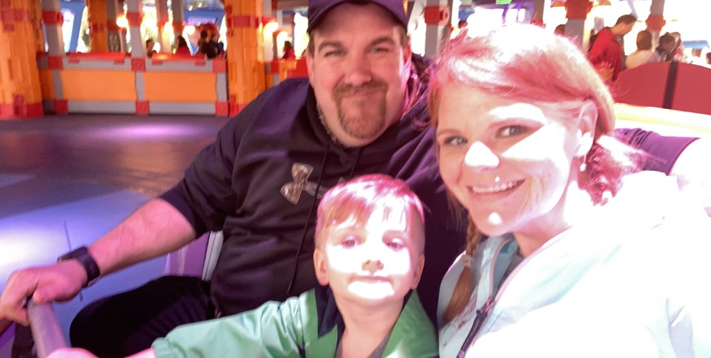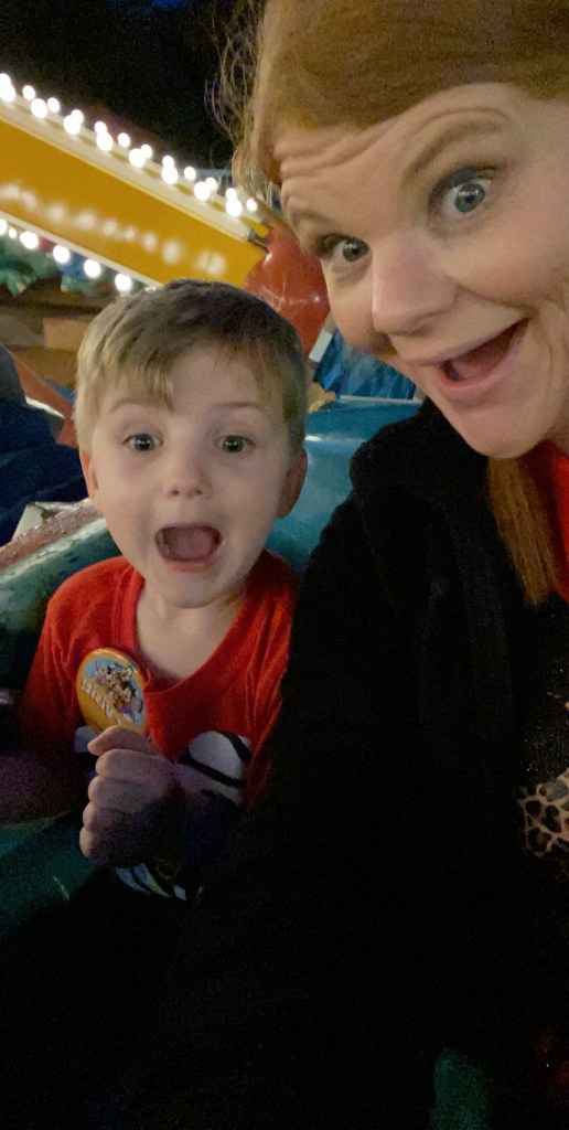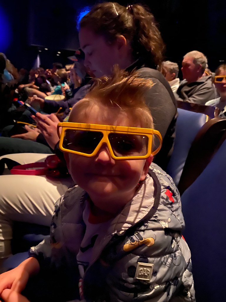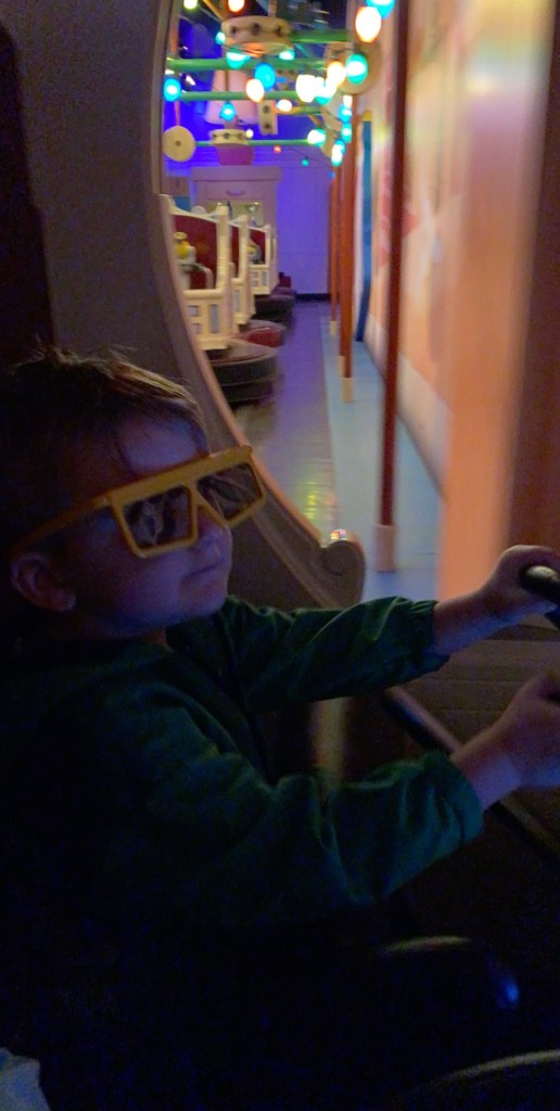 The car for this ride had little canons that you shot virtual balls at screens throughout the whole ride. It was a 3D ride that required you to wear glasses for and Grant thought that was so cool. He rode with me and I couldn’t even focus on aiming the canon because all I could see was his ear to ear smile.