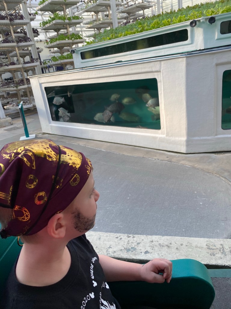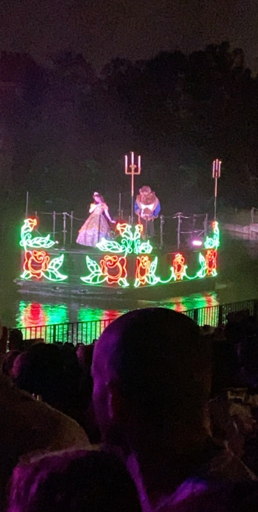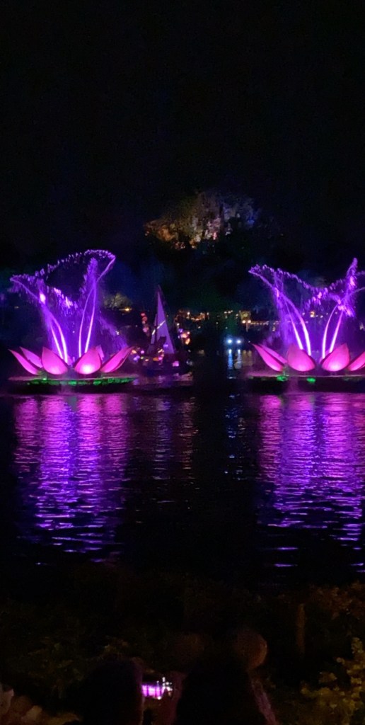 To close out our first park day, we had VIP seating to the Rivers of Light:We are One Show. Second only to the fireworks at Magic Kingdom for sentimental reasons, this was one of my favorite things of this trip! It was truly beautiful. The main focus of the show were these beautiful lotus flowers. Lotus flowers have a lot of special meaning to me due to their ability to grow through the mud and become such a symbol of beauty. This show got me all in my feels! And it even kept Grants full attention the whole time.