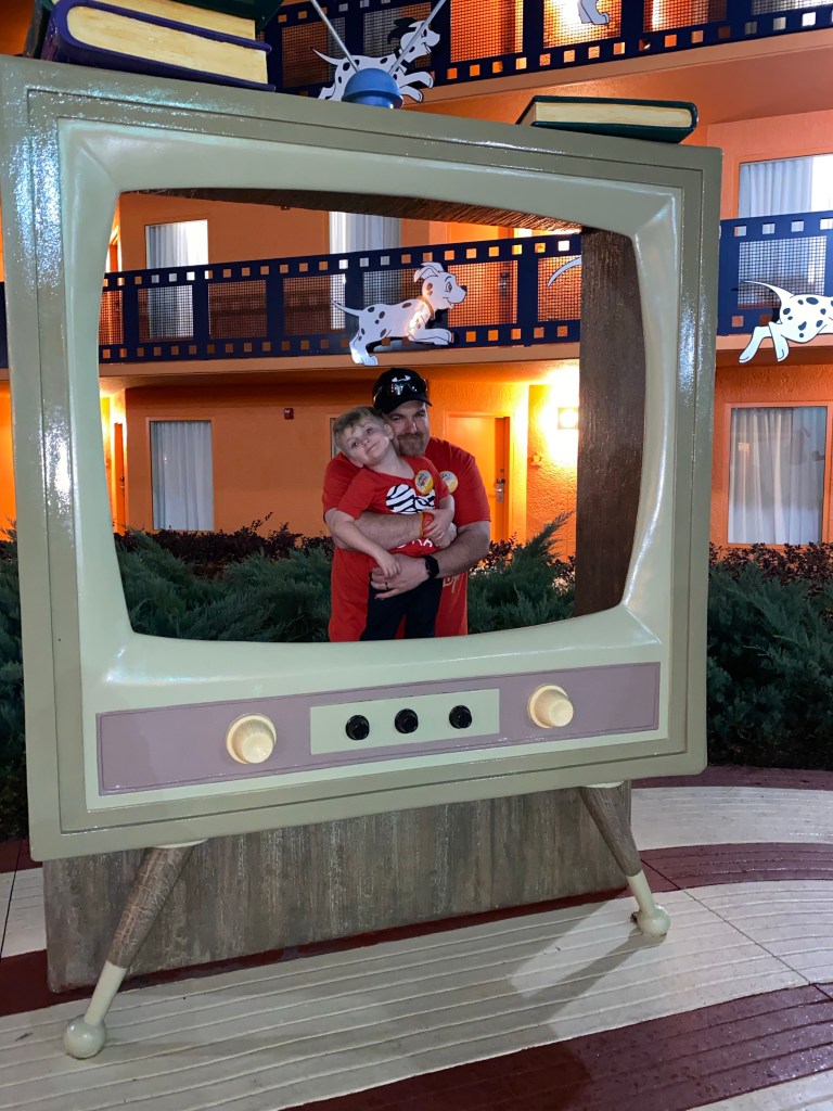This was long day number 1. We left the resort around 8 am and got home around 10:30 pm. Grant wasn’t ready to calm down just yet after a catnap on the bus ride so James and I took him to the food court to refill our mugs and explore the 101 Dalmatian area and the rest of the Fantasia buildings. Then it was time for showers and bed!