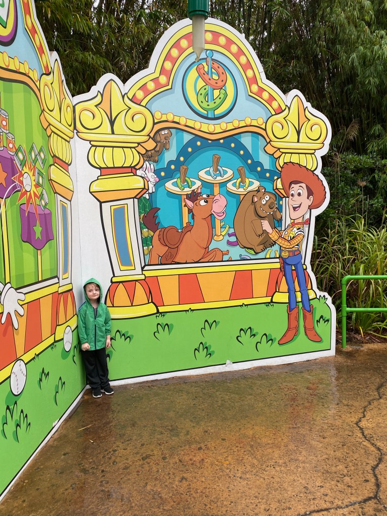 Today was the day I had been most looking forward to because this park had Grant’s favorite characters in Toy Story Land!! Again we got up early and caught the bus around 8 am getting to the park before it opened. We made it through bag check and the ticket line and headed straight for our first fast pass of the day: Toy Story Mania. It was so awesome bypassing the long line of people and waiting in a very minimal line. This ride was by far one of Grants favorites. From the minute we stepped in to the que he had the biggest eyes and was in awe that he was in Andy’s room. These are some of the memories that I will remember forever.