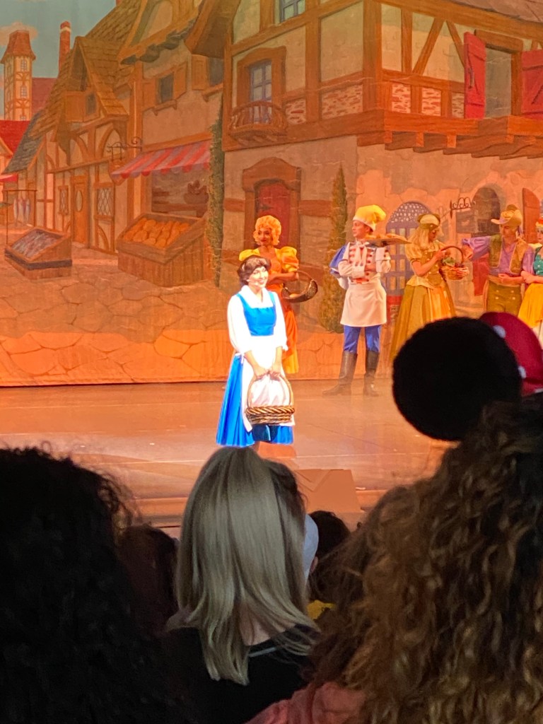 We were able to score another fast pass to the Beauty and the Beast Live on Stage Show. So we hightailed it back to sunset boulevard and made it just in time for the show to start. Beauty and the Beast is my favorite movie and Belle is my favorite of the princesses so I really loved this show even though I saw it on my first trip.