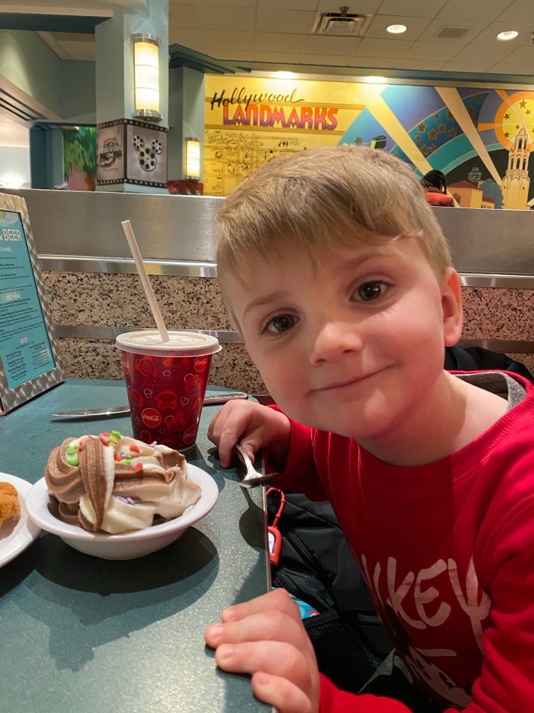 We made it back to our resort about 10 pm. Again another rope drop to close day but my whole gang were troopers. James, Grant, and I went to the food court again where he picked out a brownie sundae to eat (yes at 10 pm) while we let Mom go get a shower.