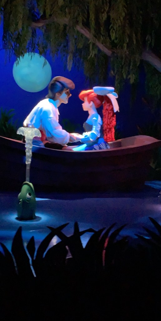 After the meet and greet with Gaston we continued our walk to the Little Mermaid ride. This was the longest line we waited in since we did not have a fast pass for this ride. The line was about an hour long. Several cast members said the parks weren’t as crowded this time of year. I sure would hate to see them anymore crowded.
