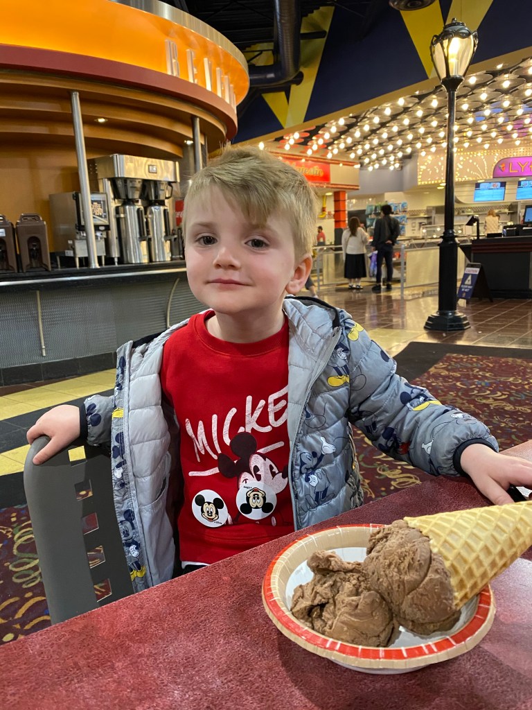 We hopped on a bus and headed toward the resort to end the 3rd day in a row of staying in the parks from rope drop to closing. We definitely made the most of the time we had. Once we got back to the resort Grant begged for some ice cream. So we got him a chocolate cone at 10 pm at night. Time and sugar don’t matter at Disney right??