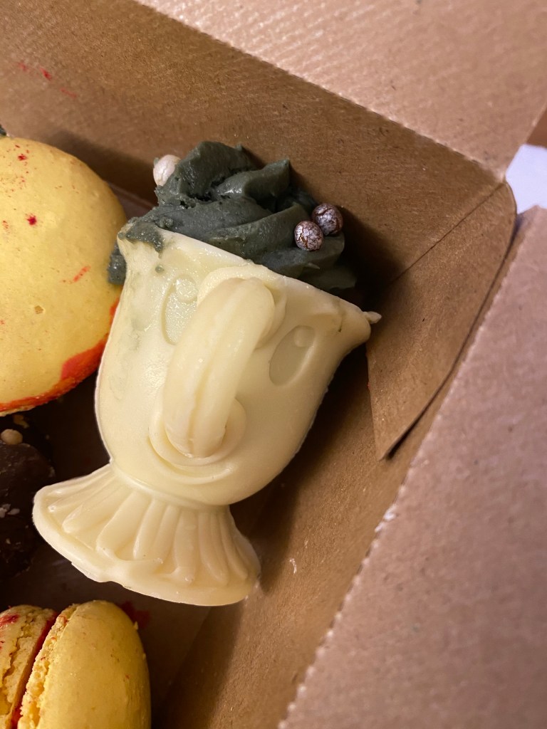We were a little short on time and all so full so our waiter offered to package up our desserts to go. It was a trio of the famous grey stuff in a white chocolate edible chip cup, a lemon jam macaron, and a dark chocolate truffle. We took these back to the hotel with us.