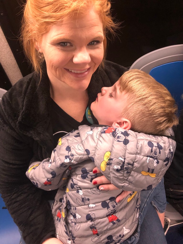 Security was crazy at the Orlando airport. So many people were in this line. But it went much more smoothly this time with James knowing a little more what to expect. We made it to our gate, found our seat and dropped our luggage with Mom staying to watch it and then headed to the food court to get Grant some chicken nuggets in hopes he would sleep on the plane with a full belly. This didn’t quite work out the way I had planned. He was awake for the whole ride but he really did a good job for being just 4 years old. He’s a pro at flying now! We again had cheerleaders on our flight but I guess they were exhausted this time because they were very quiet. I watched an inflight movie on the Southwest app, Grant watched fuller house(his favorite show) on the downloaded Netflix app and James tried to rest but was too anxious with the storm we were flying in. Pretty sure he would have benefited from a drink!! Lol