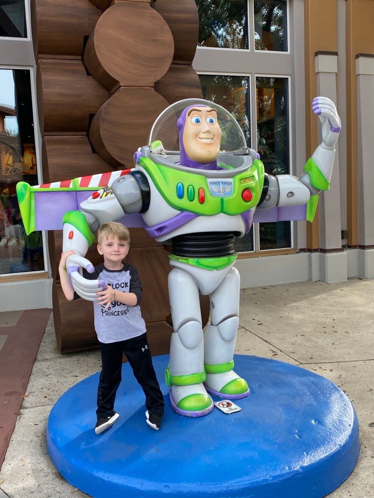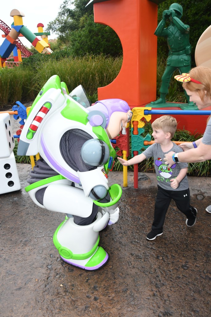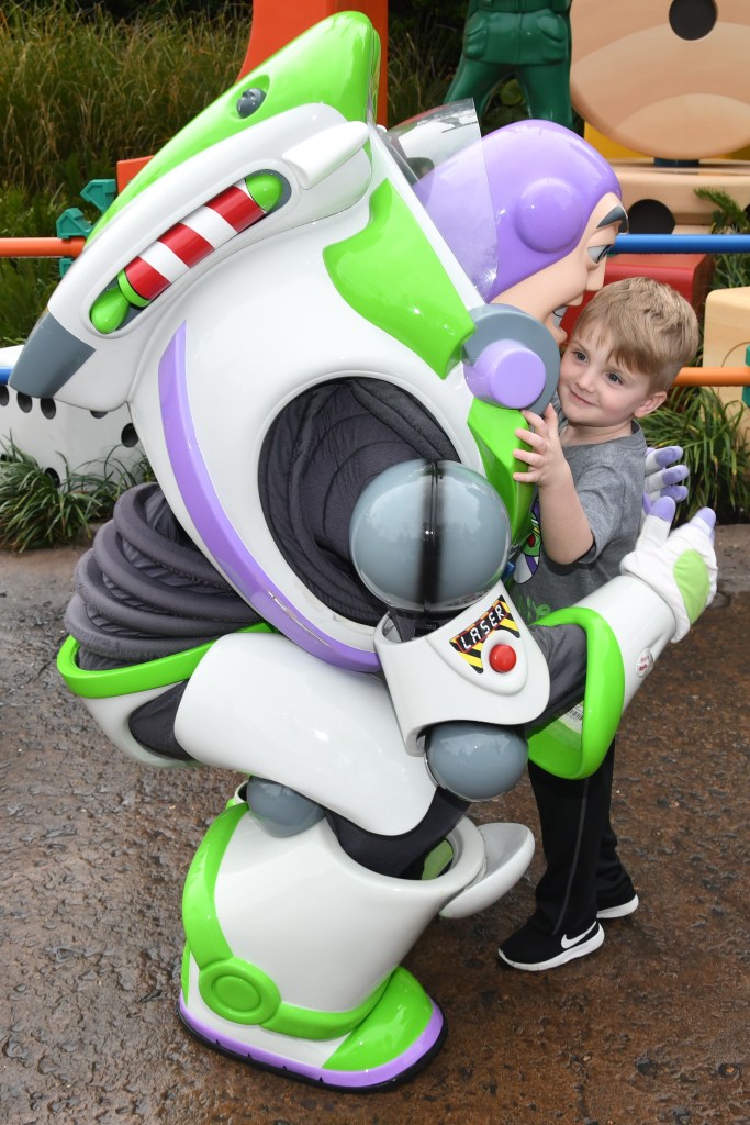 Meeting Buzz was definitely a highlight for Grant. He loved all the characters but he had the BIGGEST smile on his face when we got to Buzz. He gave him huge hugs, high 5’s, asked to press his reset button and Buzz let him. When Grant pushed it, it turned Buzz off and he fell over. Grant had to hurry and press it again to turn him back on. So cute and Grant was ecstatic that he got to turn him on and off. They saluted each other and buzz stamped Grants Autograph book.