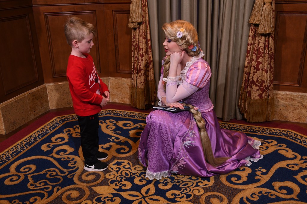 After getting these made, we happened upon a princess meet and greet with absolutely no line. We took advantage of this crazy opportunity and Grant got to meet Rapunzel and Tiana. If I had to pick 2 of his favorite princesses they would totally be it! He was once again star struck!