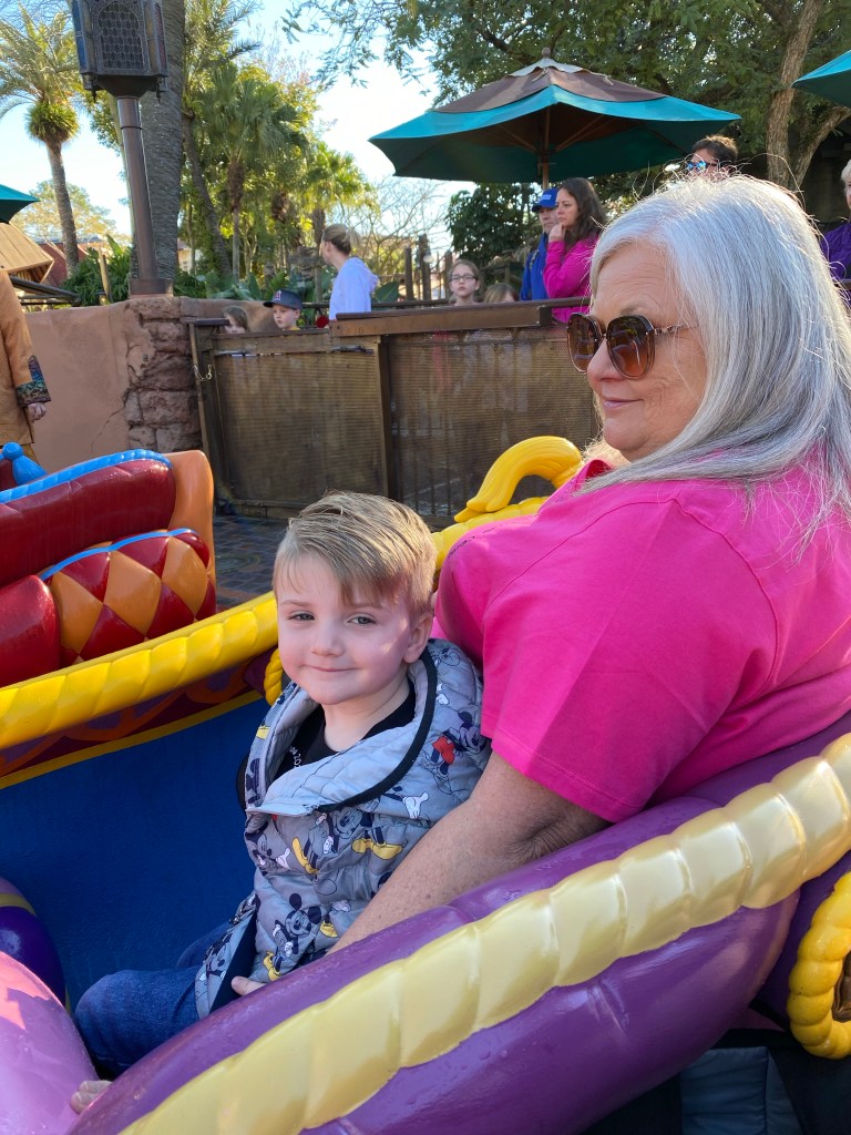 Next up was Dinoland. We got right on the Triceratops spin ride and Grant absolutely loved it. He hasn’t been a huge fan of bigger rides in the past but he did great on this trip! I was so proud of him.