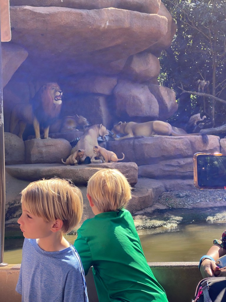 We were so full after this we decided we needed to walk around and explore a bit. We made our way to our third fast pass of the day the Kilimanjaro Safari. This is an open air safari ride and was a nice way to see some amazing animals, although being on the back of the car made for a pretty rough ride. Grant loved spotting all the animals from the “menu” above our heads.