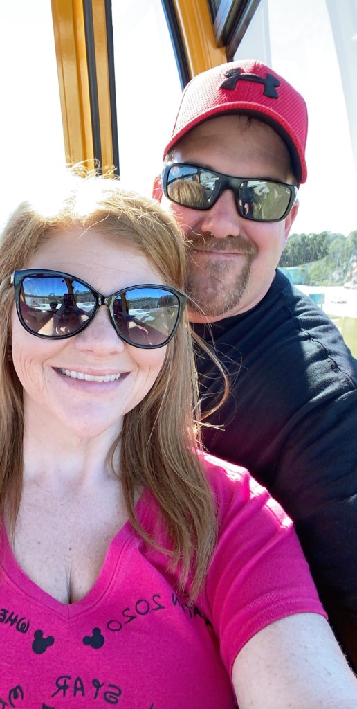 We headed to Memphis bright and early around 6:30 to make it through security and boarding for our 11 o’clock flight. Check in and security was interesting and a little hectic with a 4 year old and a husband that has only flown once before but we made it. We walked all the way to the very last gate on the B concourse and waited for our flight. We quickly learned that it would be a very full flight with 2 groups of preteen cheerleaders with tons of Pom poms heading to Disney to cheer nationals. It was a very smooth flight and we landed in Orlando about an hour and a half later. We gained an hour on the way there so it was around 2 pm when we landed. We made our way through the airport to Mickey’s Magical Express to take us to our resort. This was so exciting for all of us.