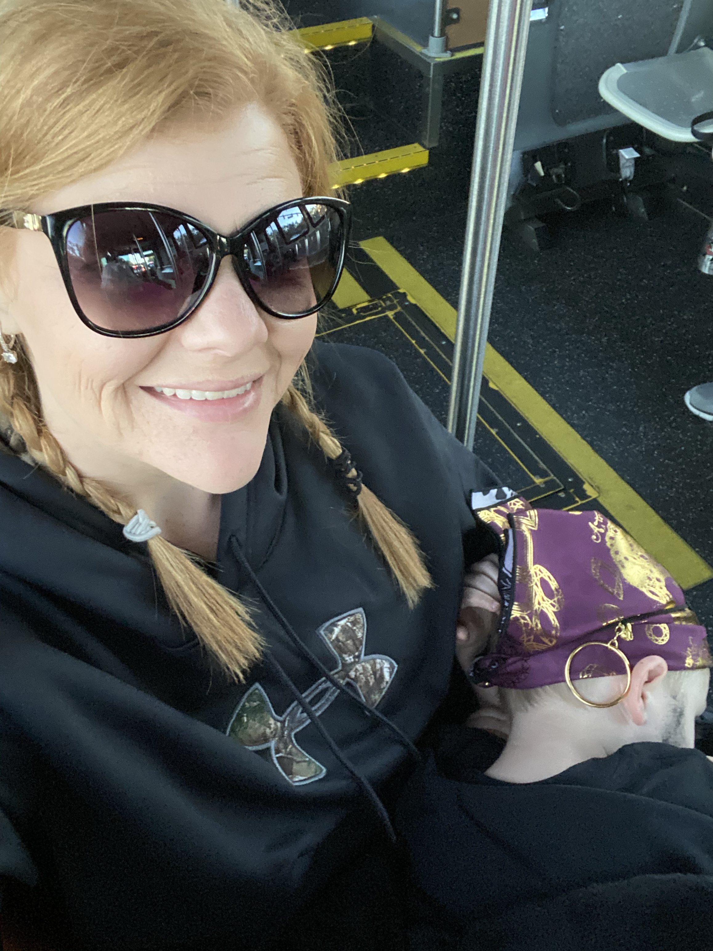 We boarded the bus to the airport around 2:45 and headed out of Disney. Sad time. We were all ready to go home but so sad to be leaving the happiest place on earth. We got about halfway to the airport and our bus experienced engine failure. We had to stop in the middle of the interstate and wait about 15 minutes for a new bus to come get us. I think this was the universe telling us we weren’t supposed to leave yet lol! We unloaded the broke down bus and onto the new bus right in the middle of the interstate. This was a little nerve wracking for me but James carried grant with a death grip and I carried our backpacks and all was just fine.