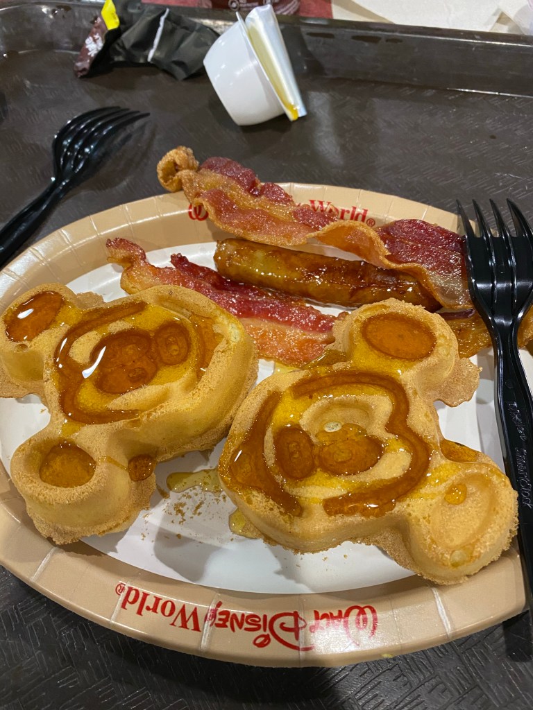 This was the day we were leaving. We actually slept in a little on this day(8 am). We took all our luggage and checked it at the front desk since we weren’t heading to the airport until 2:45 but checkout was at 11. Then we went to the food court and all of us ate another round of Mickey Waffles for breakfast.