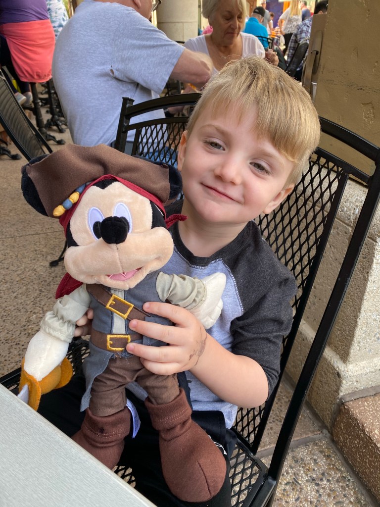 Grant begged to go back to the Toy Story Toy Store so we went back there and he picked out a pirate Mickey stuffed animal to take home. This boy loves pirates!